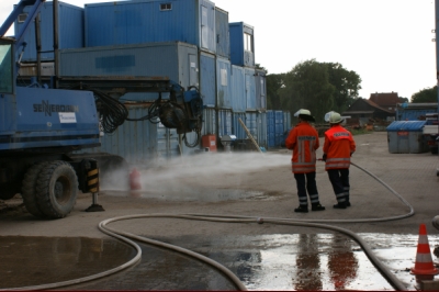 Beim Eintreffen der ersten Kräfte drang dichter Rauch aus dem Gebäude. Sofort gingen zwei Atemschutztrupps mit C-Rohren vor und löschten die Flammen. Mit zwei Überdruckbelüftern wurde der Brandrauch aus der Halle gedrückt. Die eingesetzten Feuerwehrleute mussten mehrere kleine Gasflaschen, sowie Flaschenwagen ins Freie bringen und mit reichlich Wasser kühlen. Die Führungsgruppe der Samtgemeindefeuerwehr baute die Einsatzleitung mit einem Einsatzleitfahrzeug auf und unterstützte den Einsatzleiter bei seiner Arbeit. Der alarmierte Einsatzleitwagen aus Langlingen brauchte nicht mehr an der Einsatzstelle tätig werden. Nach ca. 60 Minuten Einsatzzeit konnten die ersten Einsatzkräfte abrücken, nach ca. drei Stunden war der Einsatz für die letzten der insgesamt 78 Feuerwehrleute aus der Samtgemeinde Wathlingen beendet.