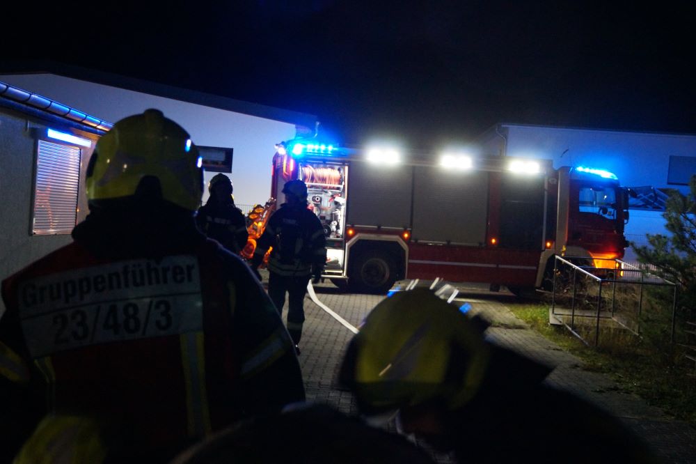 deutlicher Feuerschein sichtbar. Ebenfalls sollten sich noch vier Personen im Inneren des Betriebes