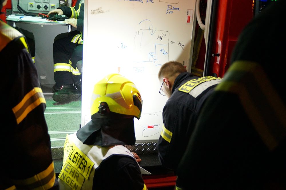Zügig konnte eine Person durch die Einsatzkräfte gefunden und mithilfe einer Fluchthaube in